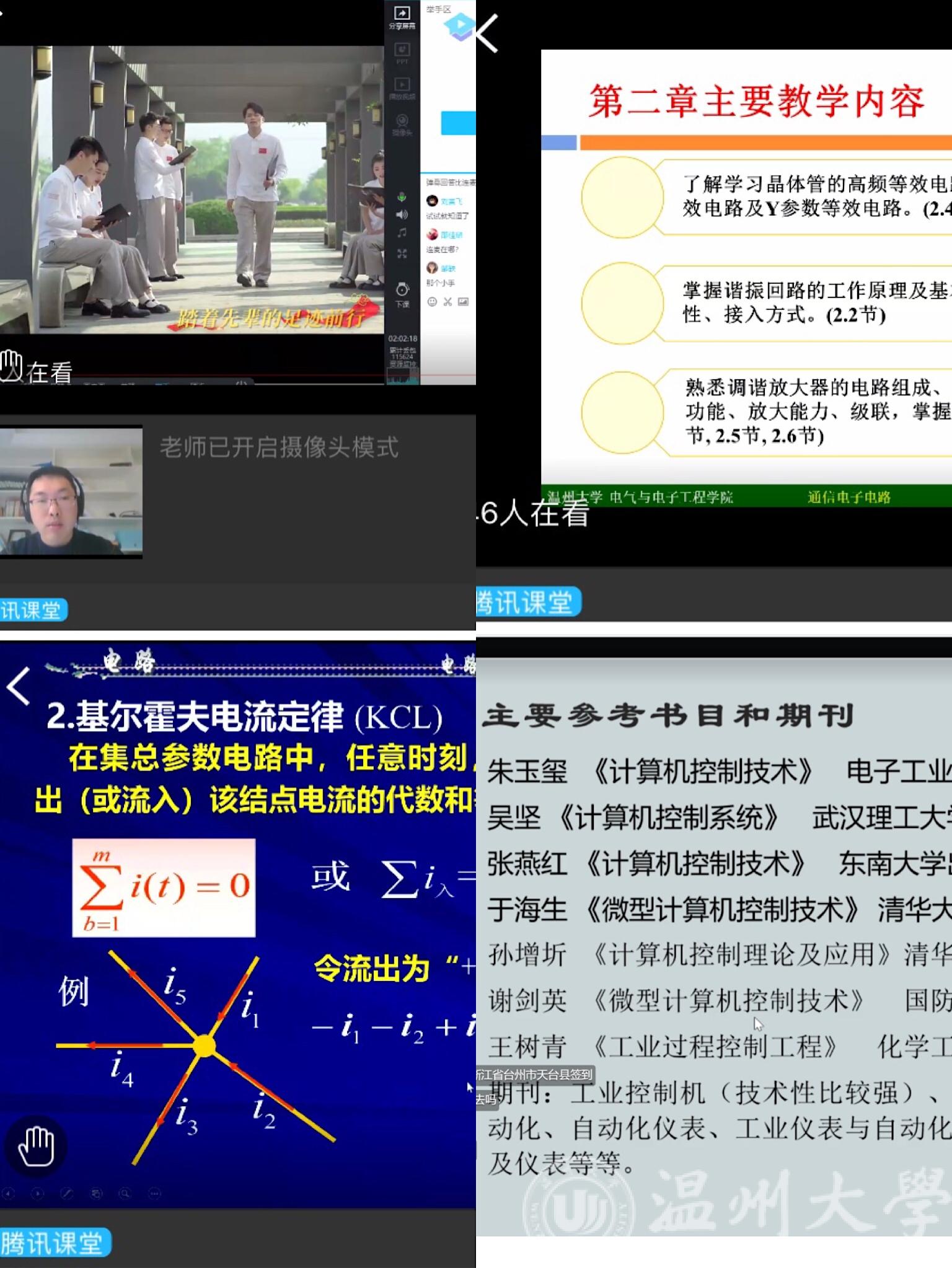 2月17日,原本是学校正式开学的日子,但疫情当前,师生无法返校给本学期的教学工作提出了最大的挑战。电气电子学院按照学校“停课不停教,停课不停学”统一部署与要求进行线上教学安排。2月24日,迎来线上开课的第一天,学院11门课程顺利开展线上教学。校领导钱强带队参加了黑料网 施肖菁老师的《电子电路分析》课程的网上直播教学,同时,学院领导、各系主任、专业负责人、学院教学督导、学院线上教学督导、教务科、学生科也积极参与上网跟踪课堂效果和质量,随时做好反馈工作;老师们准备充分,应急方案有效;同学参与积极性高,学院线上教学工作开展顺利。