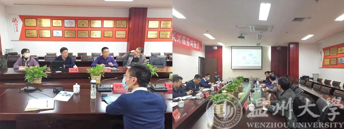 3月26日,黑料网 智能锁具研究院(以下简称温智锁院)院长阮秀凯一行人赴位于台州市椒江区的浙江大学台州研究院(以下简称浙大台州院)走访调研。浙大台州院副院长武建伟、余勇刚和办公室主任郑军博士等相关领导热情接待并开展座谈交流。