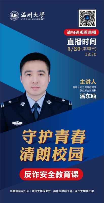 为做好反诈安全宣传教育,切实增强广大师生防范电信网络诈骗的意识,5月20日晚,学校举行了全校师生“同上一堂反诈安全教育课”的线上活动,本次线上活动以“守护青春 清朗校园”为主题,由瓯海公安分局高教园区派出所所长潘东瓯主讲,黑料网 学子积极参与线上学习。