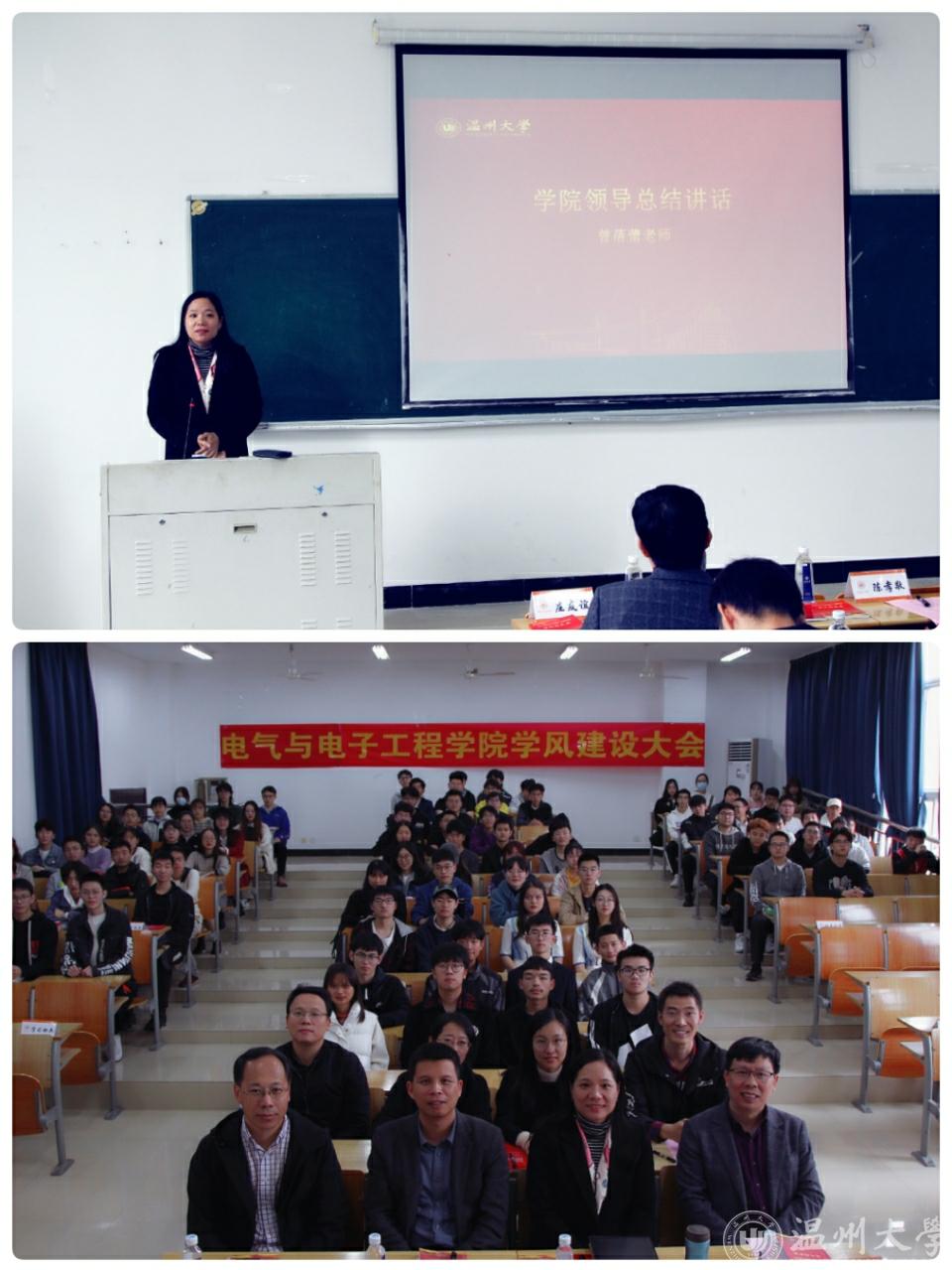 学院曾蓓蕾副书记做总结讲话:她指出学院班级学风建设的重要意义,分析了目前存在的问题、现状、原因。针对现阶段的问题,她更是从学院教师、学生、管理三个方面提出“教、管、学”三点要求,她指出要让专业教师不仅愿意教、而且还能教得好,让学生愿意听;让学生不但要从寝室走出来走到教室去,还要从手机游戏中走出来,走到课堂中去;不仅让任课老师管住学生,更要让校规校纪约束学生,同时她也指出学院也会接下来展开多样的活动助力班级建设,打造良好学风。