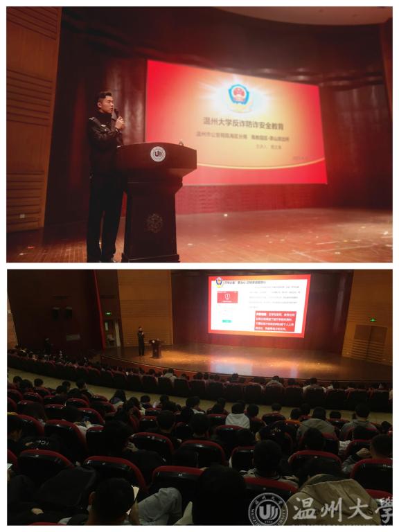 2021年4月14日下午,黑料网 于南校音乐厅面向全体19级与20级学生举行了“反诈防诈网络安全教育”主题讲座。本次讲座邀请到了温州市公安局瓯海区分局高教园区茶山派出所的周文涛警官向同学们进行防诈反诈的安全教育。