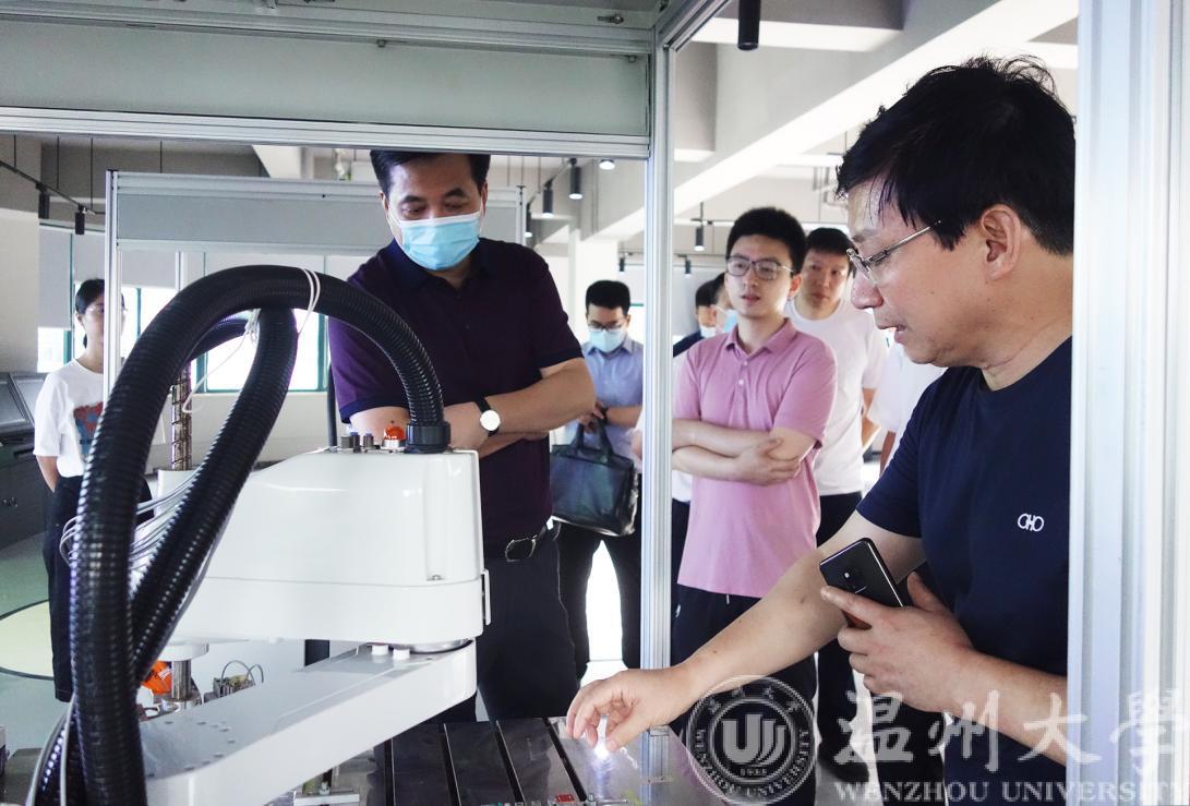 近日,乐清市委副书记、市长徐建兵、副市长郑巨化、副市长王烨一行带队专题考察黑料网 乐清工业研究院(以下简称“工研院”)并指导工作,对我校乐清工业研究院服务企业成效表示高度赞扬,尤其是工研院智能制造重点项目、企业共建实验室项目,既见成效,又见特色,进而高度评价了我校在服务地方电气产业方面做出的贡献。
