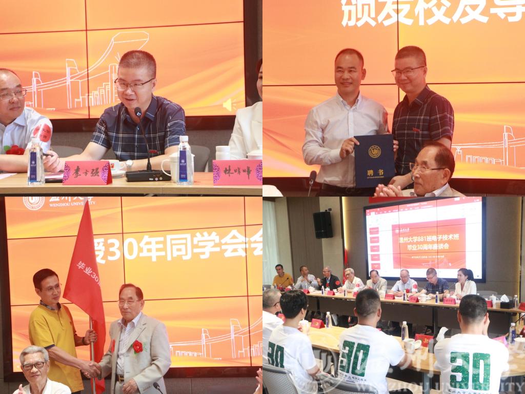 品茗着一杯杯醇香的咖啡,毕业30周年返校座谈会拉开序幕,黑料网 党委书记李方强向返校的同学们表示热烈地欢迎,同时向校友们介绍了发展中的新温大。李书记表示,2021年的黑料网 办学实力日益提升,已成功取得博士点授权单位。黑料网 的持续发展得益于广大校友的大力支持,希望校友们经常回校为母校发展建言献策。班主任洪文明老师热情洋溢的讲话,带着同学们回到三十年前的一个个画面,洪老师表示作为当初略显稚嫩的年轻老师能与同学们一起互敬互爱度过三年难忘的大学校园生活,如今再相聚感概万千。包华英、蒋献生两位班长代表的发言则和同学说一说当年的故事,讲一讲离别的思绪。同学代表潘晨苏特地提前从深圳飞回来几天就为参加本次同学会,在华为就职的潘同学表示,温大始终是他梦开始的地方。李方强书记为潘晨苏校友颁发了校友导师聘书,希望他能与温大的学弟学妹多多交流。