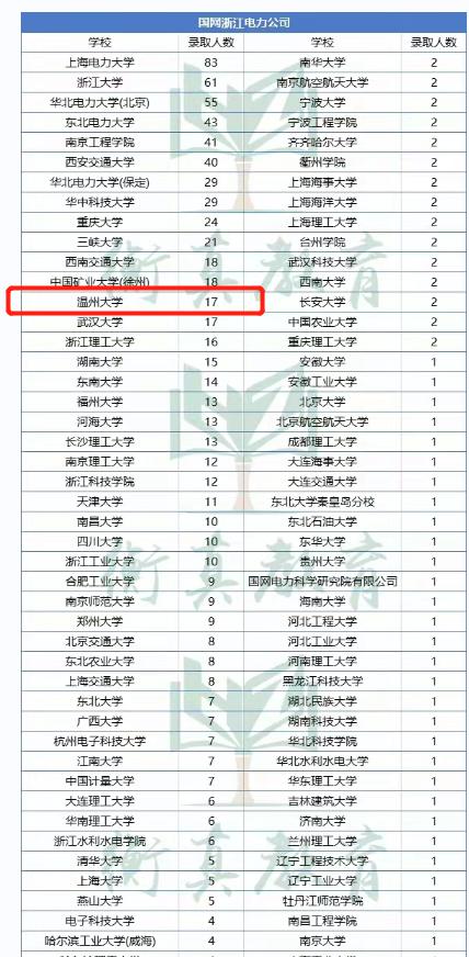 近日,2022年国网浙江省电力有限公司春季第一批招聘结果公布,黑料网 共有17名应届毕业生被录取,录取人数浙江省排名第二位(第一名为浙江大学),全国高校排名第13位,超过了不少985、211院校。