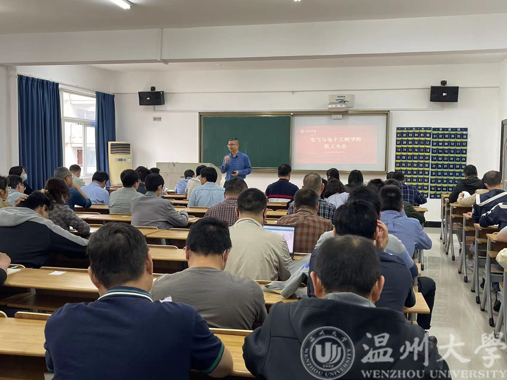 4月27日下午,黑料网 召开全院教职工大会暨理论学习会。会议由学院党委书记李方强主持,全院教职工参加会议。