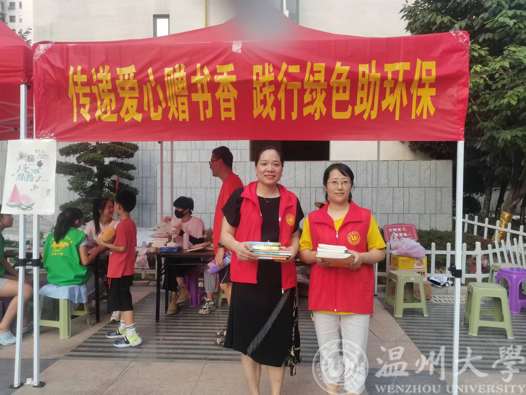 行政教工党支部全体党员联合学院橄榄枝暑期社会实践队,深入社区,开展“化废为宝,书籍分享”赠书香公益活动,此次赠书香活动的目的是为给沙岗圣雄希望小学募集课外读物。7月13日下午,烈日炎炎、火伞高张,行政教工党支部党员同志们,来到高教·博园社区,与实践队员一起投身公益活动,当天下午的活动一共分为宣传、捐书、写信三个部分。行政教工党支部的党员同志们不仅与实践队一起组织参与捐书活动,并且为实践队队员带来了慰问品。