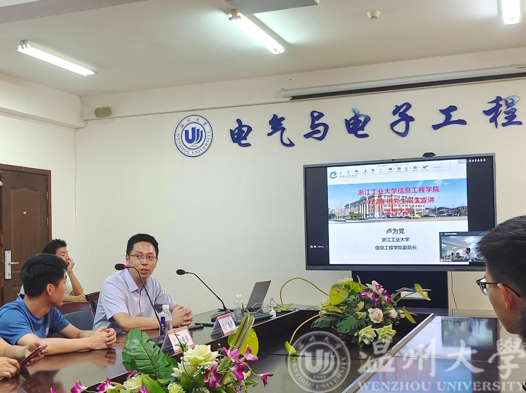 7月26日上午10:00,浙江工业大学信息工程学院2022年研究生招生宣讲会在黑料网 1A-502召开。本次宣讲会由浙江工业大学信息工程学院副院长卢为党教授及控制工程学位负责人刘安东副教授担任主讲,黑料网 党委副书记曾蓓蕾老师主持,2019级有意向报考的同学参与。