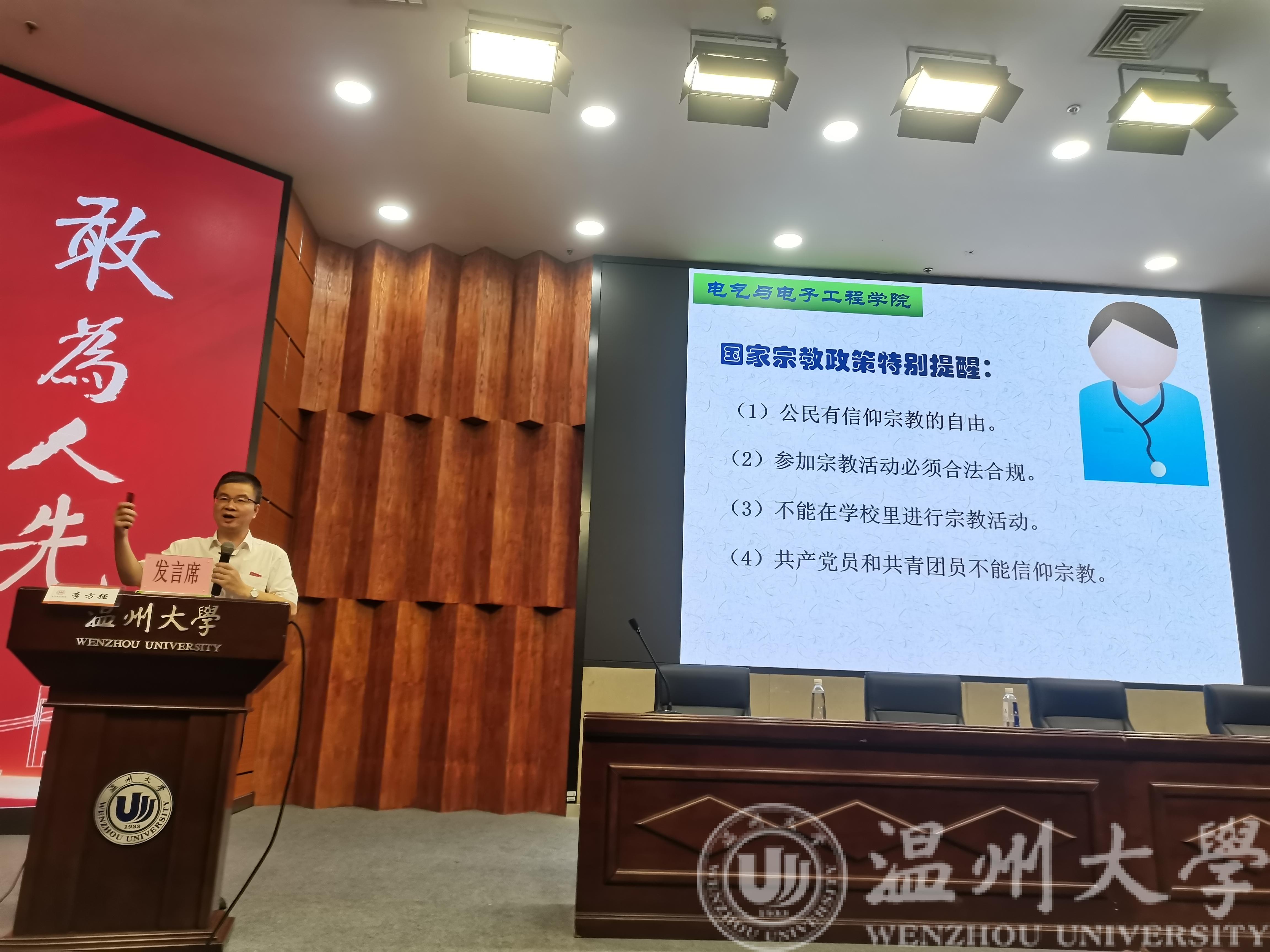 典礼结束,学院党委书记、副院长李方强为新生讲述“大学第一课”。李书记首先欢迎大家来到温州,更欢迎大家到黑料网 求学。他首先向大家介绍了温州的风土人情和学校发展的历史沿革,并告诉大家在大学学会“求助”和“助人”,鼓励各位新生执着奋进,创造属于自己的精彩人生。