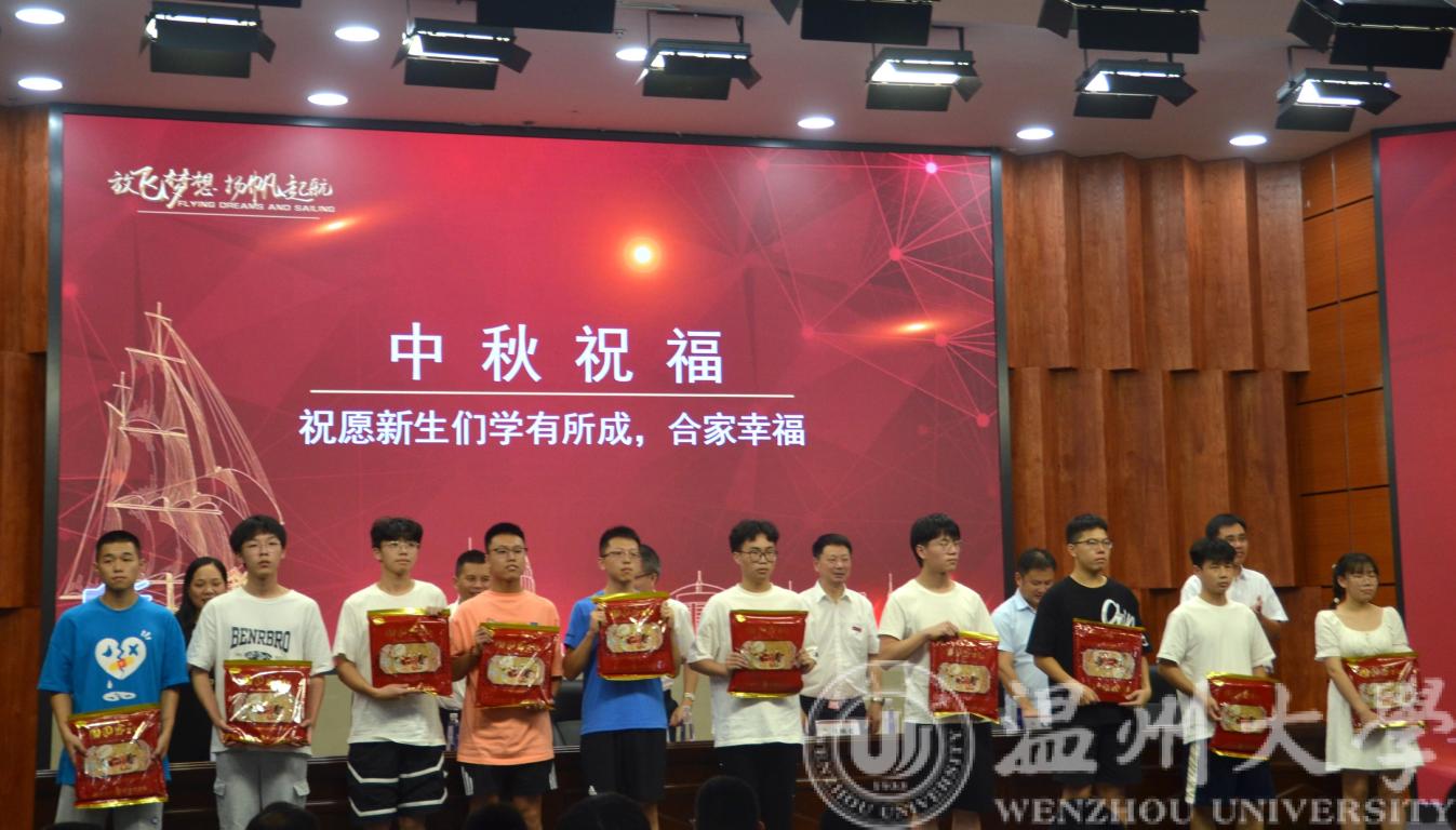 会议第六项,全体起立齐心唱出:“东海水,雁荡山,我温大精神,浩浩荡荡!”学习校歌,感受校歌内涵,随后新生同学们小心翼翼地佩戴好黑料网 校徽,正式开启崭新的大学生活,成为一位光荣的温大学子!学院特地为同学们定制了温州特色美食——桥墩月饼。一个大大的月饼代表团圆与分享,希望同学们能够晒出寝室的第一张合照,在温大的第一个节日能够过得圆满而快乐。