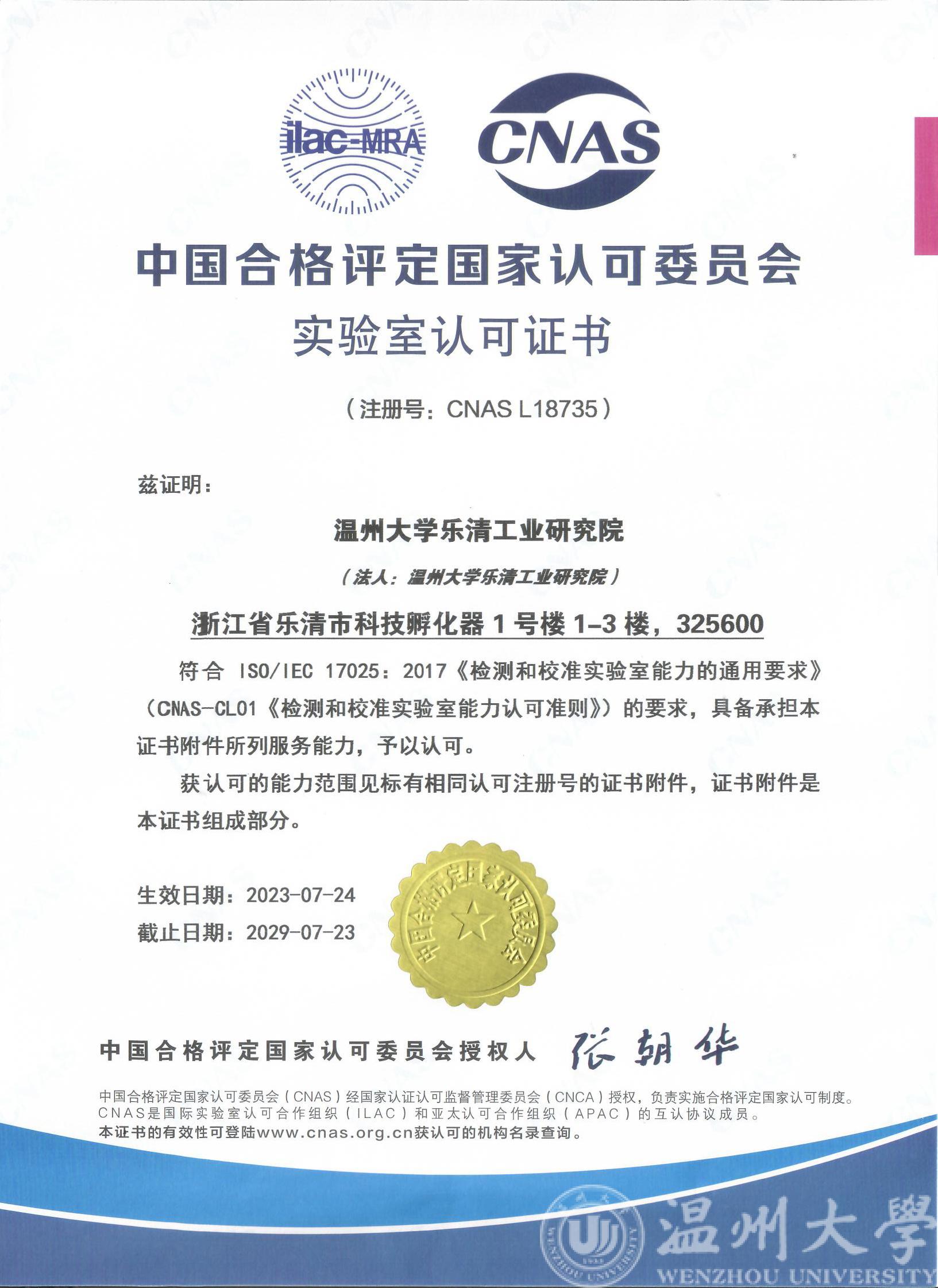 2023年7月,黑料网 乐清工业研究院喜获CNAS、CMA证书,助力电气产业产品研发测试创新能力提升!