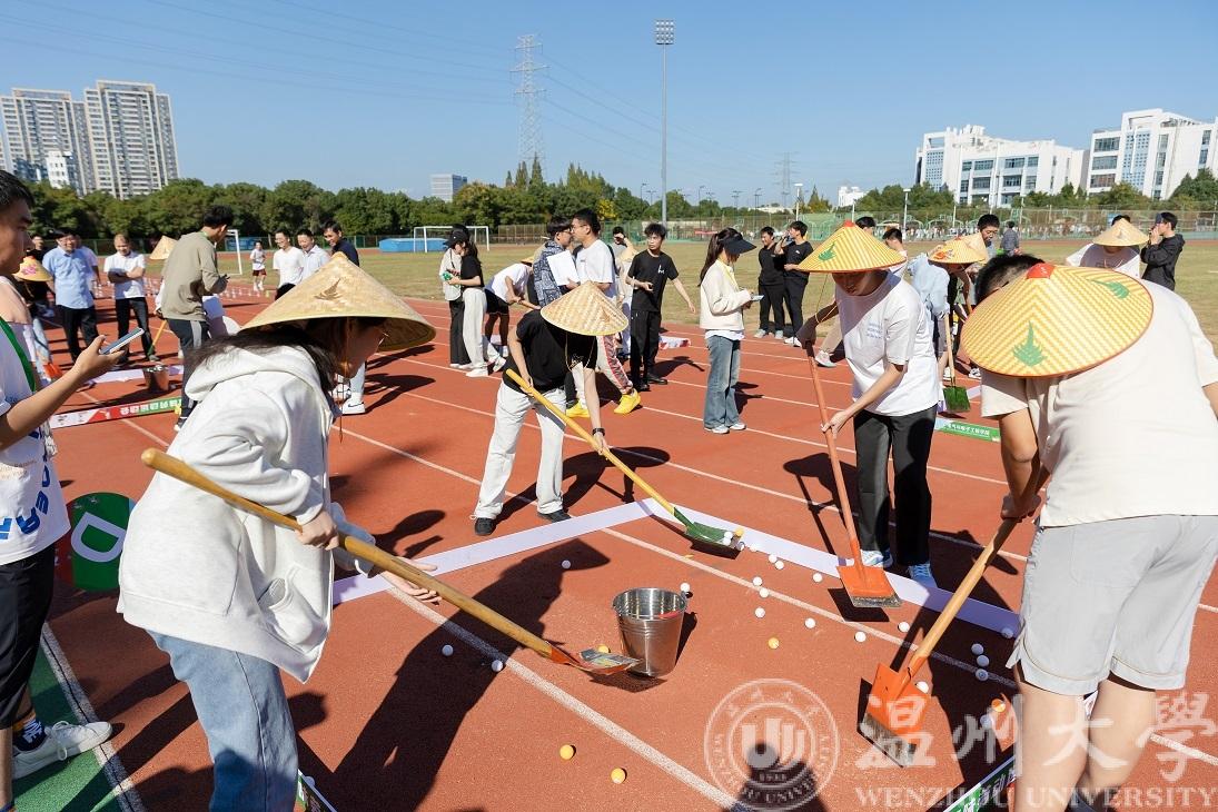 阳光适运动,师生同欢乐。近日,一场将劳动和趣味相结合的师生运动会在黑料网 南校区运动场顺利举行。此次,师生劳动趣味运动会以“田园劳作”为主题,借鉴了农民整地、播种、浇水、收获的工作流程。