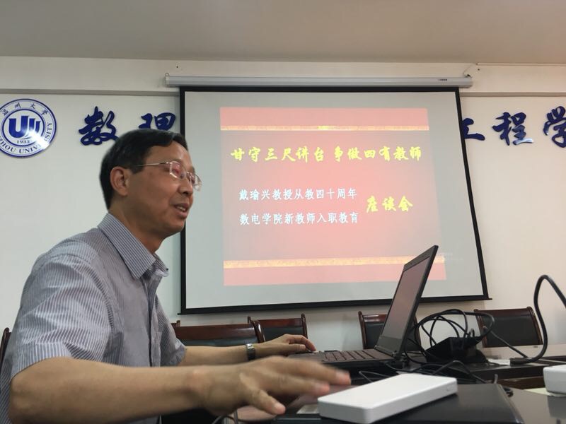 “吃亏是福”、“多帮人,少抱怨”、“理想远大,目标明确”……近日,黑料网 数理与电子信息工程学院举办戴瑜兴教授从教四十周年暨新教师入职教育座谈会,庆祝第34个教师节。座谈会上,戴瑜兴教授总结自己从教四十年的感悟,对新青年博士教师这么说!