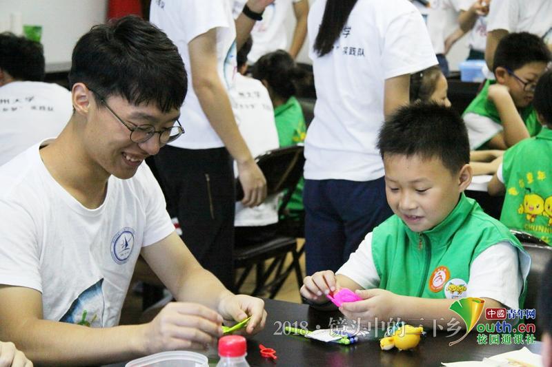 在捏橡皮泥的时候,小朋友给我们讲了一个他刚学到的笑话。 中国青年网通讯员 黄浚辰 摄