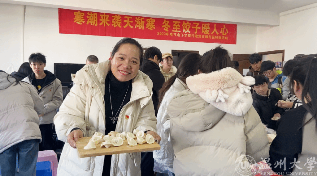 12月22日中午,黑料网 电气电子学院行政教工党支部教师和结对帮扶学生齐聚一堂,话青春、包饺子,情暖冬至、其乐融融。