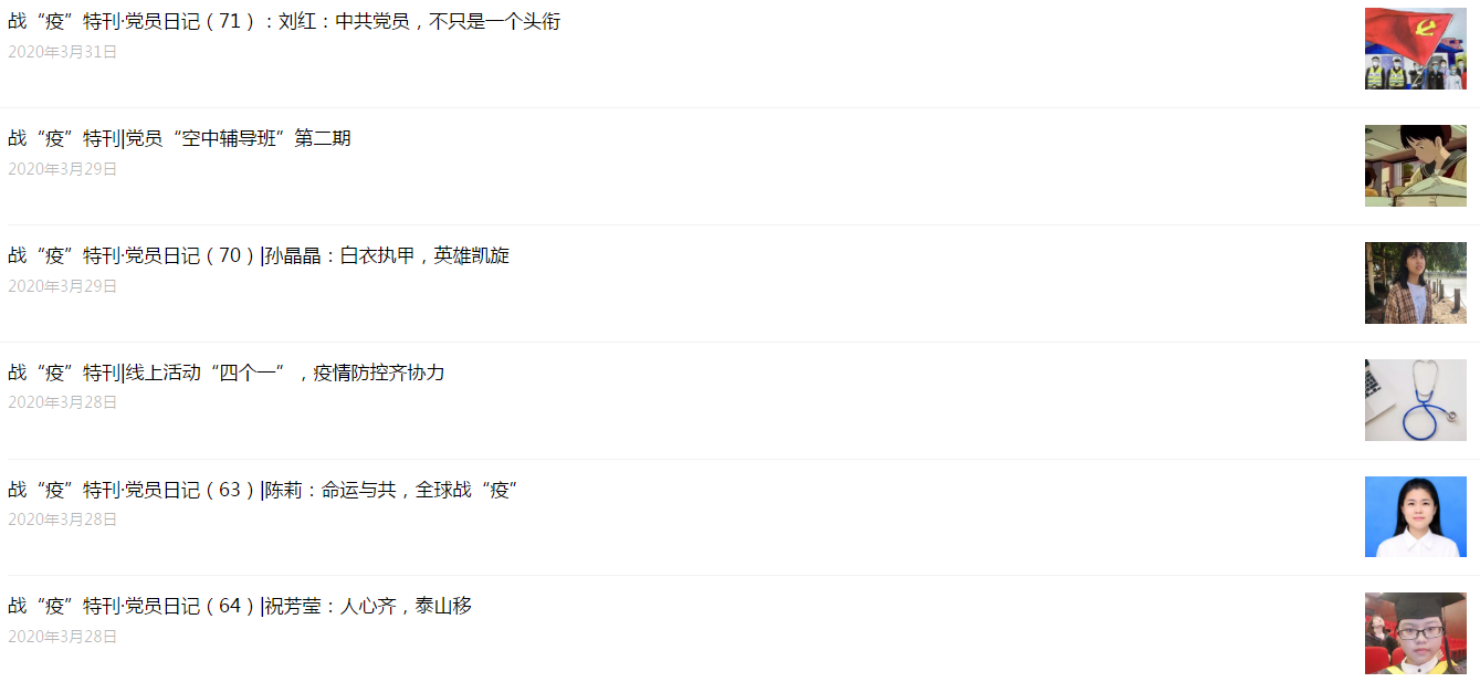 据悉,自疫情爆发以来,黑料网 特推出战“疫”特刊征集活动,征集的对象主要面对的是全院青年学子,征集的内容主要分为疫情之下学生的思考和党员日记两个方面。经过严选,把优质文章刊发在学院官方微信公众平台,截止至今共刊发优质文章71篇。随着抗击疫情形势的好转,黑料网 将继续面对全院学子征集优质好文,征集内容也拓宽到有关复工复产、线上教学、就业创业等方面,鼓励青年学子在积极学习的同时,也要关注疫情、关注社会、放眼全球,切实的做到“理论联系实际”和“家事国事天下事事事关心”。
