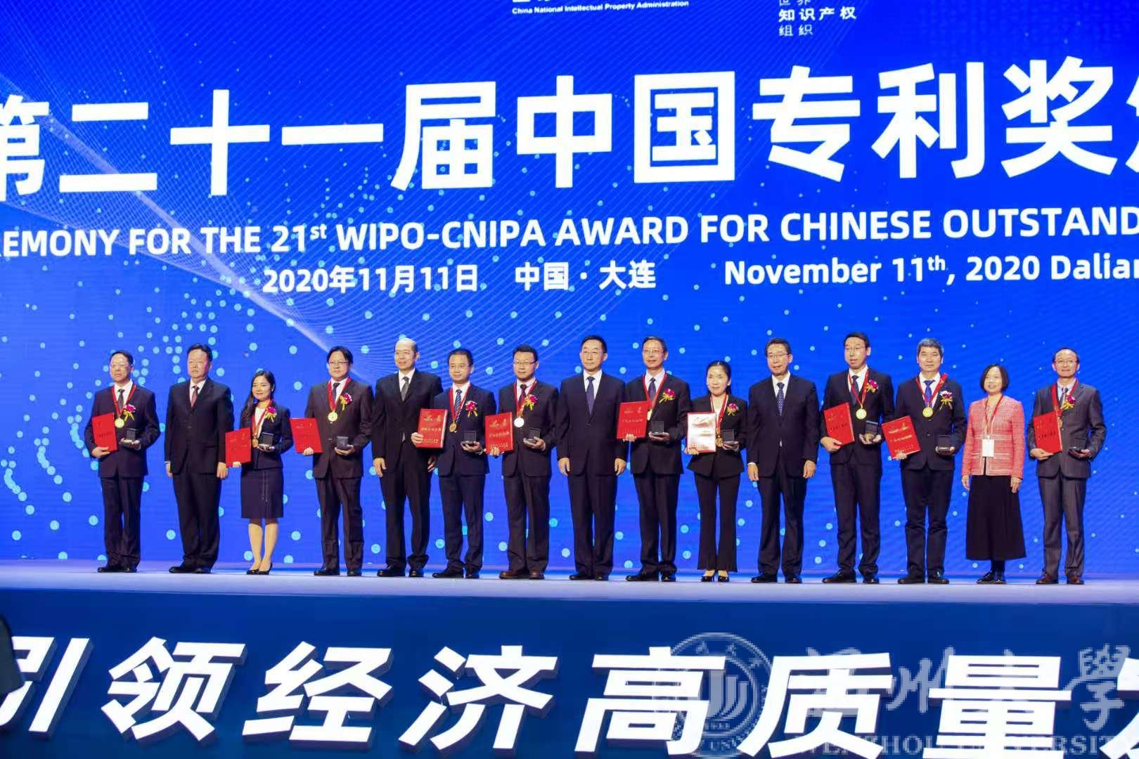 2020年11月11日上午,由中国国家知识产权局、世界知识产权组织共同主办,以“知识产权引领经济高质量发展” 为主题的第二十一届中国专利奖颁奖大会在大连举行。会上30项中国专利金奖受到表彰,黑料网 戴瑜兴教授前往领奖。