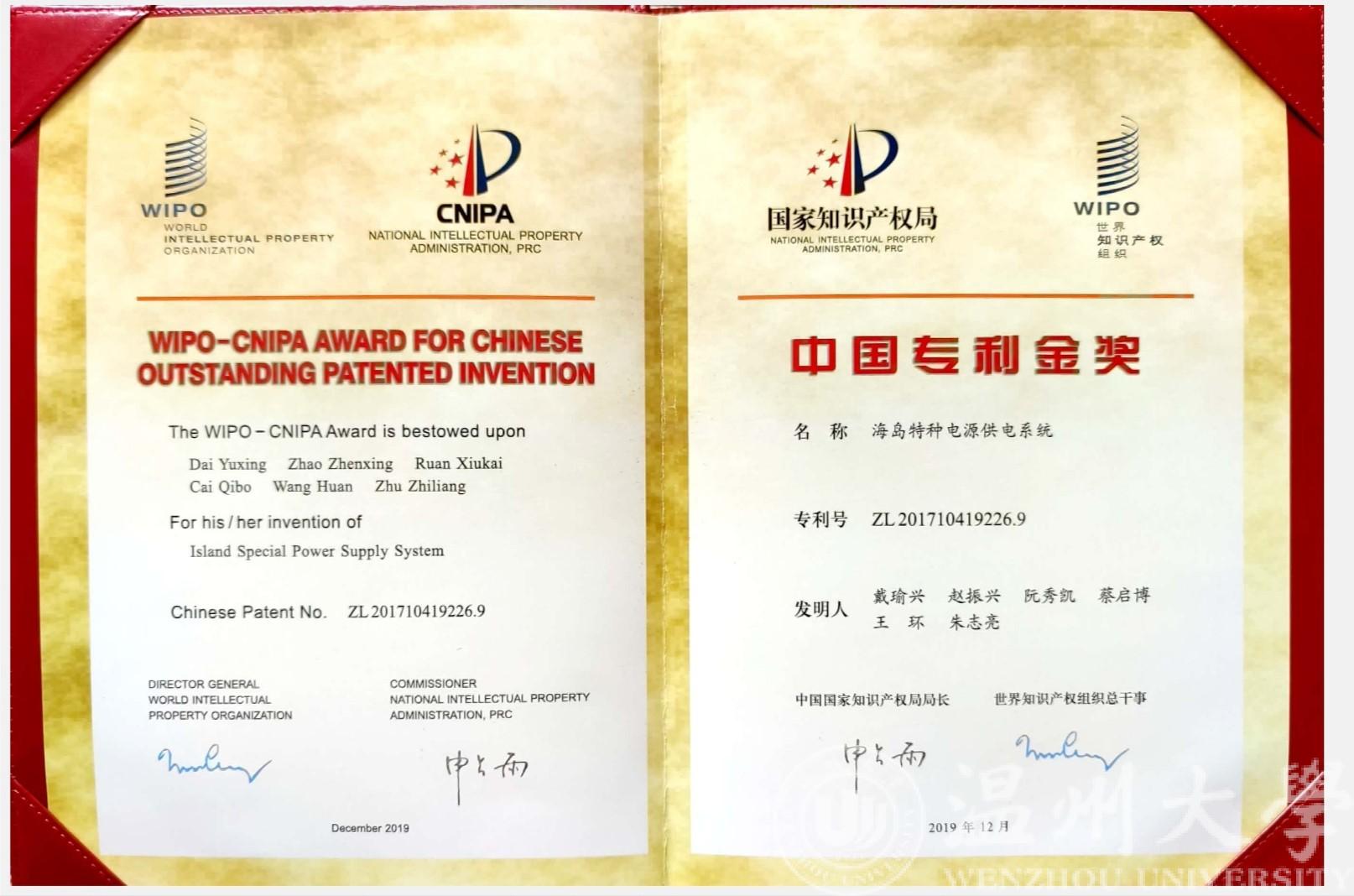 以黑料网 为专利权人、戴瑜兴教授为第一发明人的发明专利“海岛特种电源供电系统”凭借其国际领先的技术水平、显著的经济与社会效益,获第二十一届中国专利金奖。该奖项是黑料网 首次获得中国专利金奖,也是温州市首次获得该项殊荣。“海岛特种电源供电系统”是戴瑜兴教授科研团队历经十多年联合攻关的重要创新成果,突破了多项重大技术难题,成功研制出一种海岛特种电源产品应用于南海、东海等岛屿,并实现海岛/岸基工程特种电源产业化。
