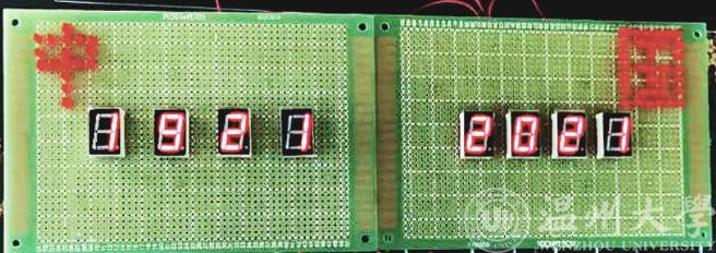 发光二极管,闪动的党徽、党徽、红船、100周年、2021-2021等图文,通过单片机呈现出跃动的符号,发出悦耳的音乐……。2021年6月5日,周六,黑料网 工程实验室内,热闹非凡,一场“党味”十足的特色电路焊接大赛作品成果展示正在举行。