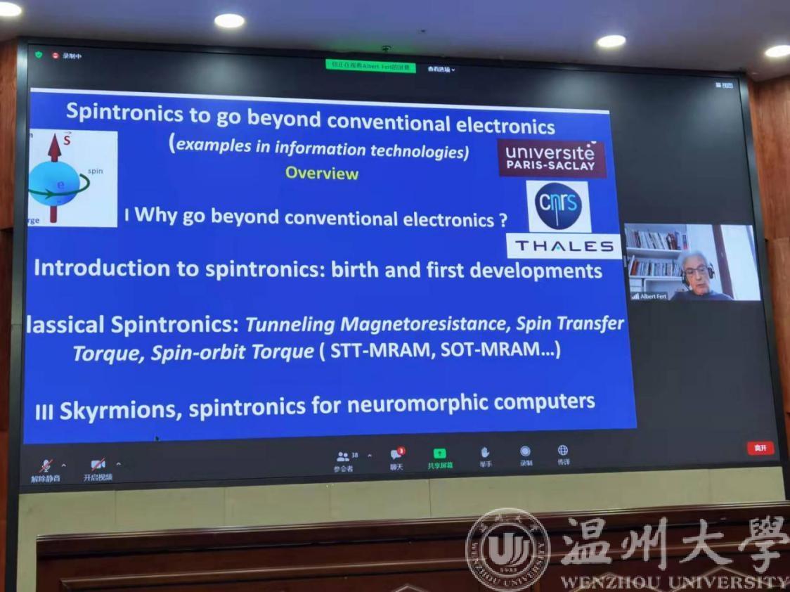 本场报告会由北京航空航天大学集成电路科学与工程学院院长,中国科协第十届全国委员会常委,教育部长江学者赵巍胜教授线上主持;中国工程院院士、浙江大学微纳电子学院院长吴汉明教授和浙江省科协二级巡视员戴力分别致辞。黑料网 院长汪鹏君教授,硅谷海纳百川孵化器创始人、美国浙江商会会长、国际创新与STEM教育协会会长郑飞君博士出席了报告会。费尔教授报告后,主会场同学们积极与费尔教授进行提问互动。费尔教授针对每位同学的问题,一一解答,并分享了自己的在科研道路上的一些经验与感悟。本次报告会通过世界级科学家以身授教,分享科学故事、弘扬科学精神,引导青年大学生热爱科学、投身科学。