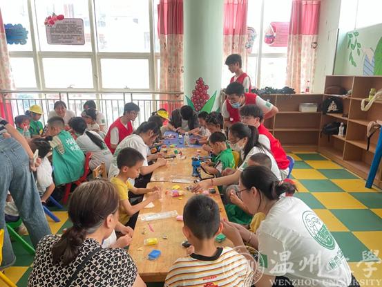 橄榄枝暑期社会实践队在博园社区文化礼堂二楼开展“红色专项”手工黏土制作活动。