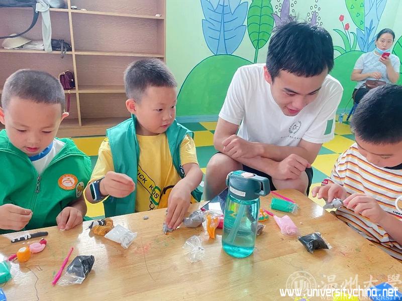 橄榄枝暑期社会实践队在博园社区文化礼堂二楼开展“红色专项”手工黏土制作活动。
