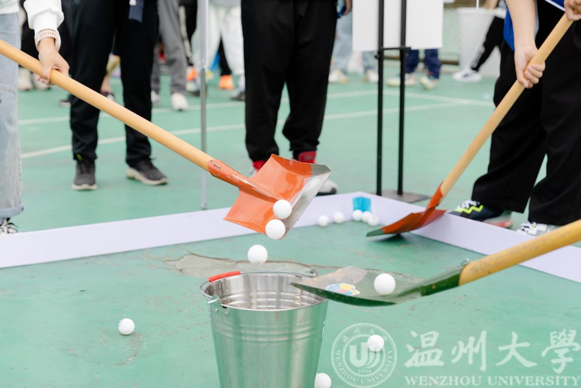 “整地插秧忙有序,欢歌笑语乐无穷”。率先开始的是整地大比拼和插秧小能手环节,师生们小心翼翼地把持平衡,一不小心乒乓球就会从铁锹头“溜出”。