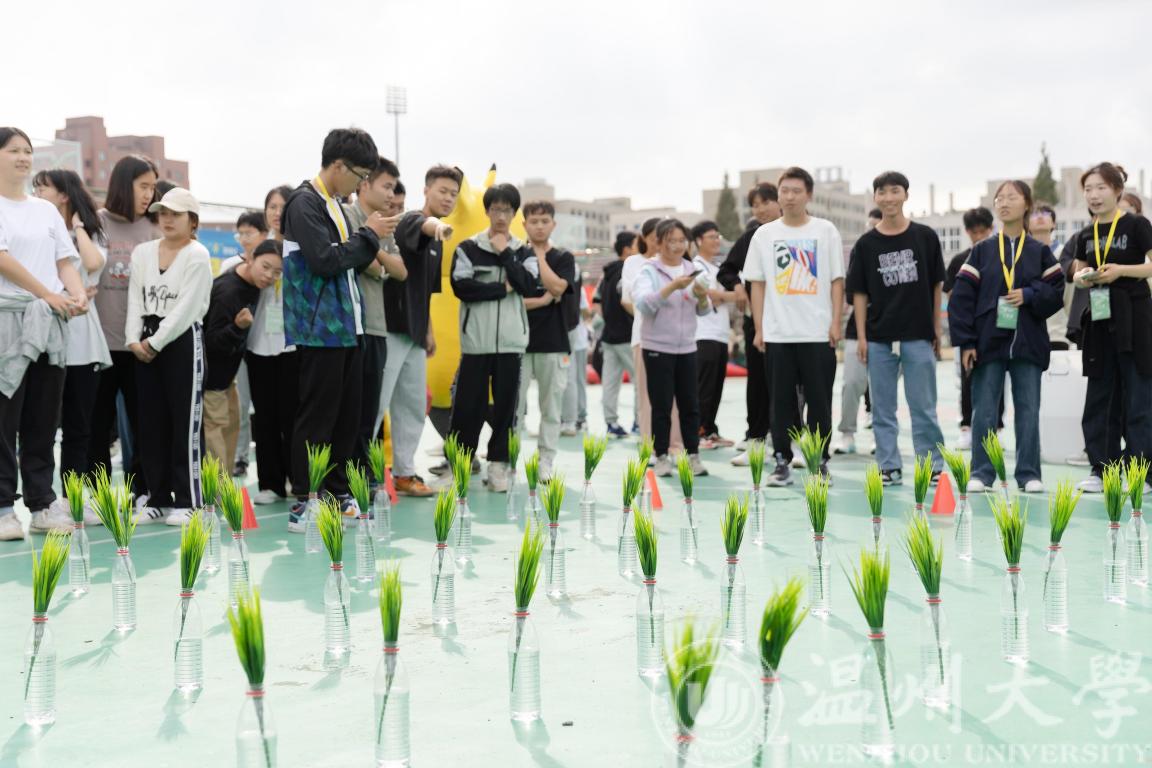 篮球场变身“秧田”,师生们在“自留地”上又快又准地将“秧苗”插入“田地”。大家在运动项目中体验农耕文化,感受劳动艰辛。