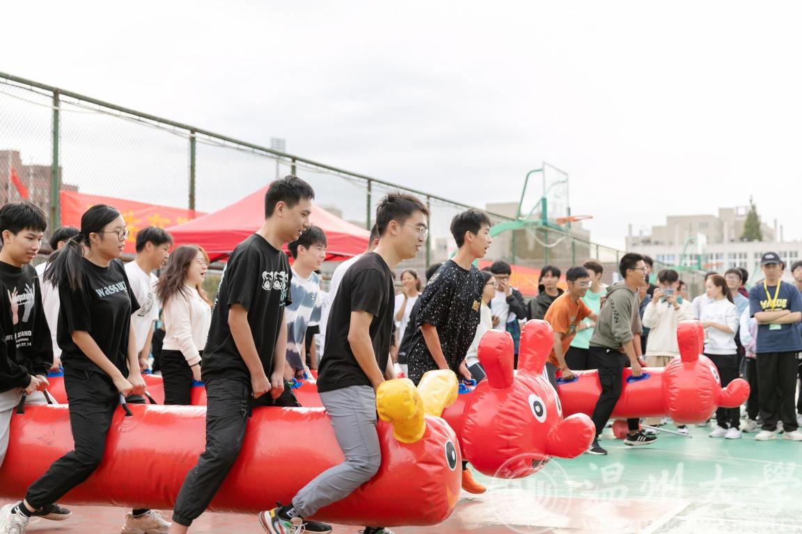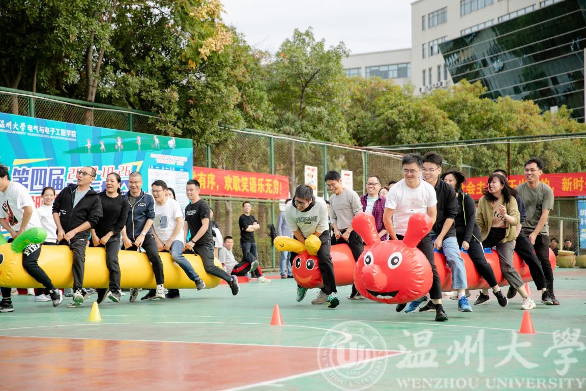 劳动项目后,还有激烈的毛毛虫竞赛和师生大拔河。老师们骑着憨态可掬的毛毛虫,喊着口号齐心协力地向前方跑去,为他们加油助威的呐喊一声高过一声。