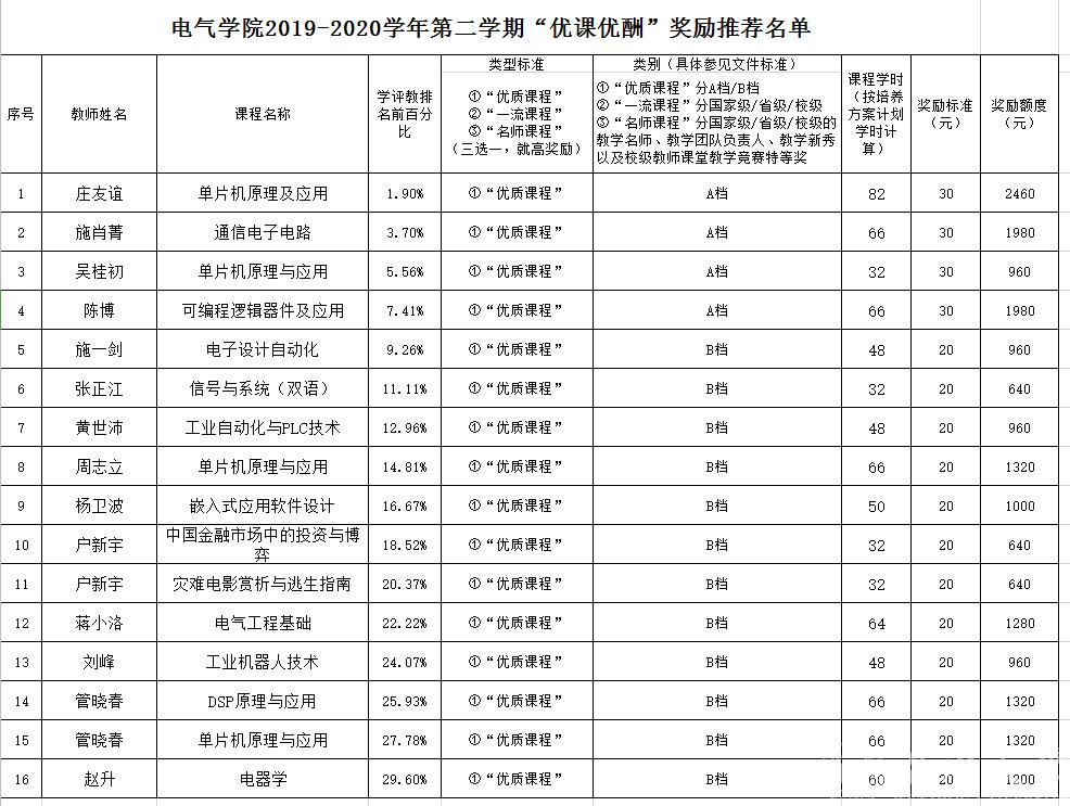 各位老师:根据《黑料网 “优课优酬”奖励实施办法》温大行政发〔2020〕60号文件通知,遴选出黑料网 2019-2020学年第一学期优课优酬推荐名单,请各位老师查看,如有问题,请于明天(周五)上午11点30前联系教学科孙双。