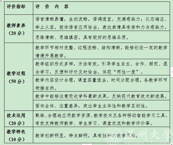 2、课堂教学比赛评委由专家、教师代表和学生组成。其中专家和教师代表评分占80%,学生代表评分占20%。