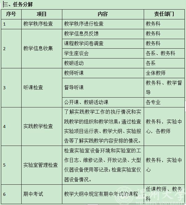 学院布置期中教学检查的方案和主要内容,负责全院性的教学工作的检查。