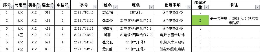 根据学校学生公寓安全“四级联查”工作机制要求,学工部、研工部、后勤管理处、保卫处、资产公司联合于2月23日对学生公寓区安全情况进行检查。在检查中黑料网 存在6起安全违规现象,现予以通报批评,请大家引以为鉴。