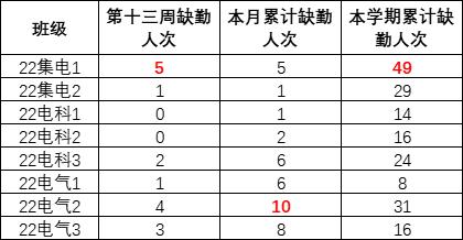 2022级上周早晚自习缺勤情况如下: