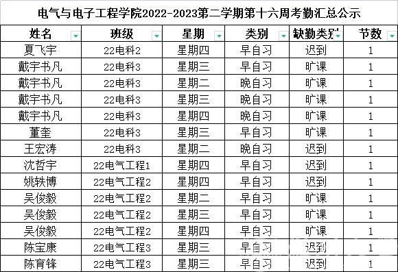 2023年6月5日至6月11日,学院学纪就业部对本院12个班次学生上课情况进行抽查。抽查情况反映如下: