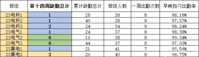 2023年12月11日至2023年12月17日,学院学风检查情况反映如下: