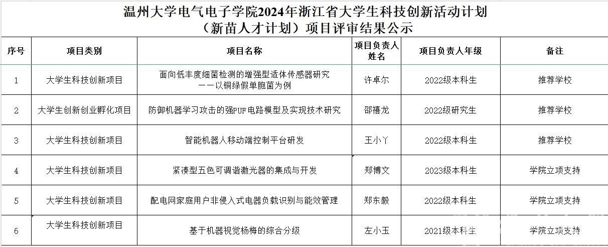 根据《关于印发〈浙江省大学生科技创新活动计划(新苗人才计划)实施办法(试行)的通知》(团浙联〔2010〕13号)和校发《关于开展浙江省大学生科技创新活动计划(新苗人才计划)2024年度项目申报的通知》的要求,经个人申请、学院评比,现对黑料网 2024年浙江省大学生科技创新活动计划(新苗人才计划)项目评审结果予以公示。