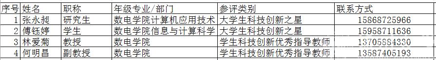 近期,黑料网 组织对师生报送的黑料网 第八届“大学生科技创新之星”和“学生科技创新优秀指导教师”材料进行审核量化评比,现拟推荐张永昶等4人参加学校联评,并予以公示。