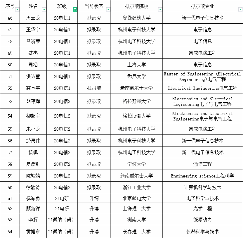 根据《黑料网 “聚创奖学金”评定办法》文件精神,结合黑料网 实际,学院将本年度考取硕士研究生、博士研究生及出国留学的64名同学直接评定为第五届“聚创奖学金”升学奖获得者。现将名单予以公示,请同学们核对录取的院校、专业以及类型,有误请在下方收集表填写中反馈。公示三个工作日,如有异议请于公示期内与学工办联系。