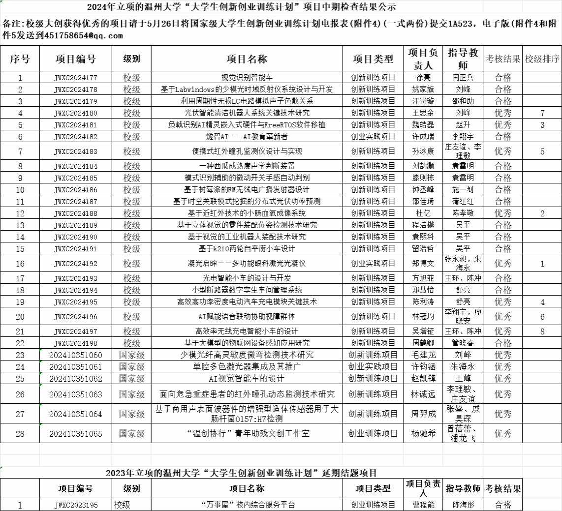 根据教务处的通知,黑料网 组织了2024年立项的大学生创新创业训练计划项目中期检查及延期结题的审核,现将检查结果公示如下,公示期从即日起至5月27日,如果有问题,请联系张老师86689020。