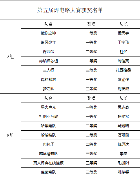 经过激烈角逐,黑料网 第五届焊电路大赛圆满落幕,经过学院专业老师的评审,比赛结果已经确定,现公布如下: