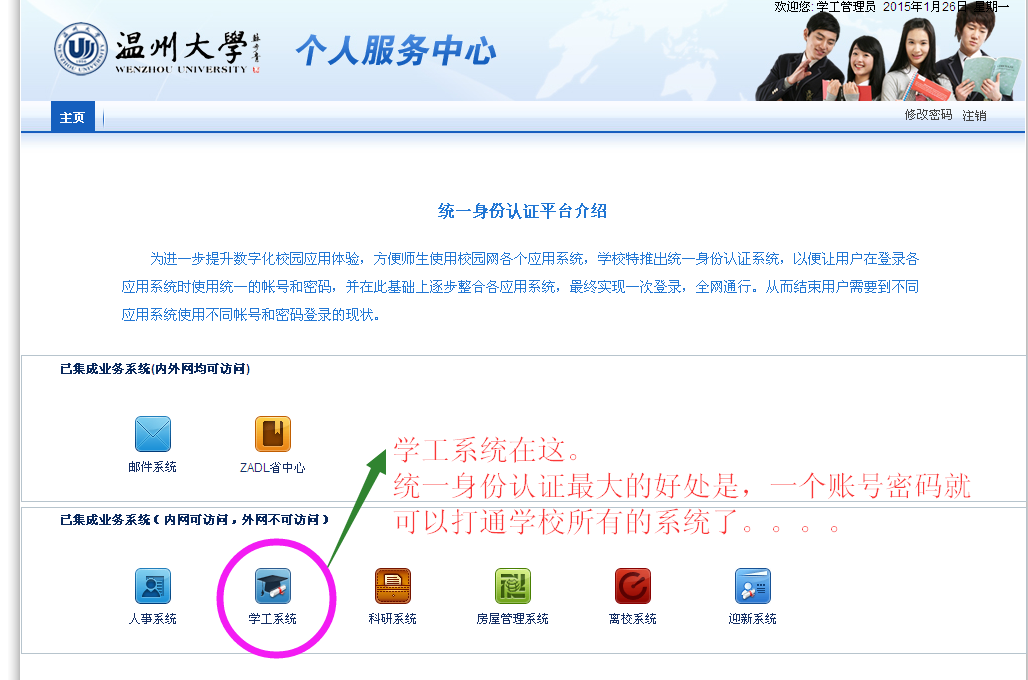 学工系统是贯穿大学生活的一个很重要的信息媒介。可在系统中的下载专区下载学校相关的各类文件,可在系统中办理个人信息维护、学生干部职务申请、评奖评优申请、各类资助申请、勤工助学岗位申请、勤工助学工资发放、日常事务(假期管理、假期留校申请、场地申请)等。请新老生同学们尽快将学工系统中的个人信息进行维护,并在以后的大学生活中将信息不断更新,以便不影响在校期间接受各类紧急信息及各项事务办理。个人信息维护示意图如下:
