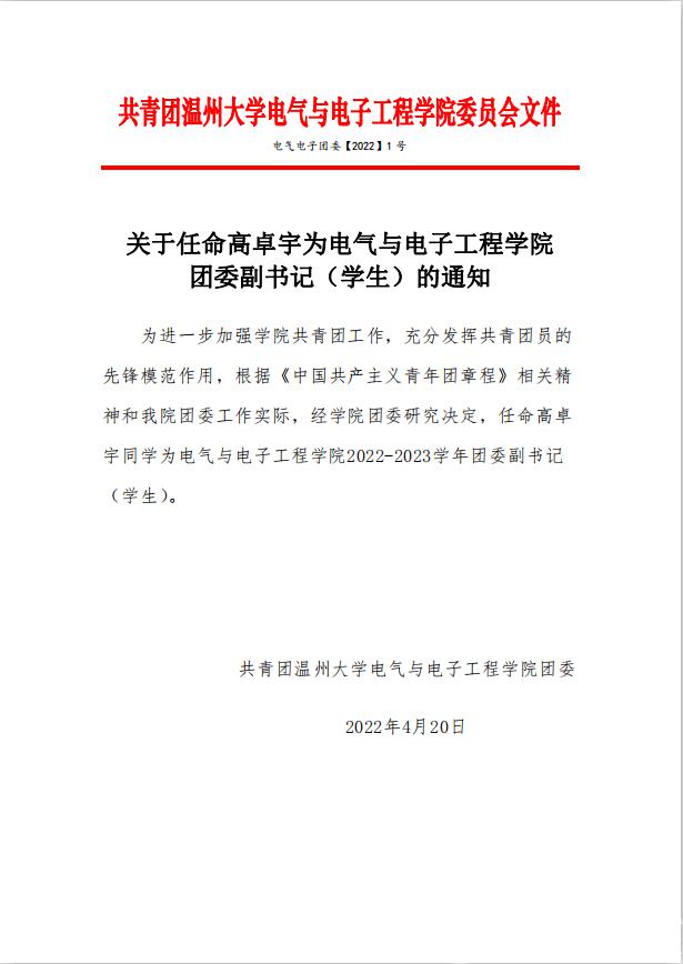 关于任命高卓宇为黑料网 团委副书记(学生)的通知.pdf