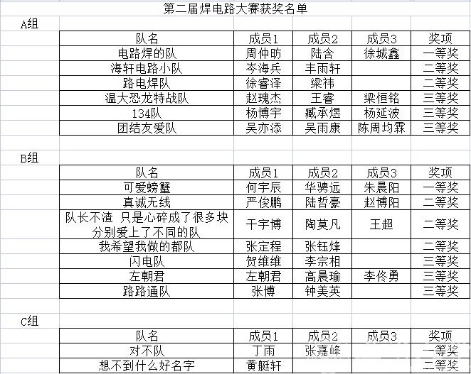 5月29日,黑料网 第二届焊电路大赛圆满落幕。经过学院专业老师的评审,比赛结果已经确定,现公布如下: