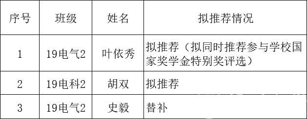 其中叶依秀同时推荐参与学校国家奖学金特别奖评选。若该同学当选,则不占学校名额,学院会再有一名额,按照得票数高低,将递补史毅同学。现将2021-2022学年黑料网 国家奖学金拟推荐名单予以公示。
