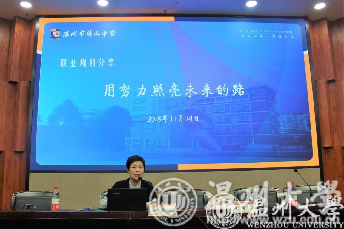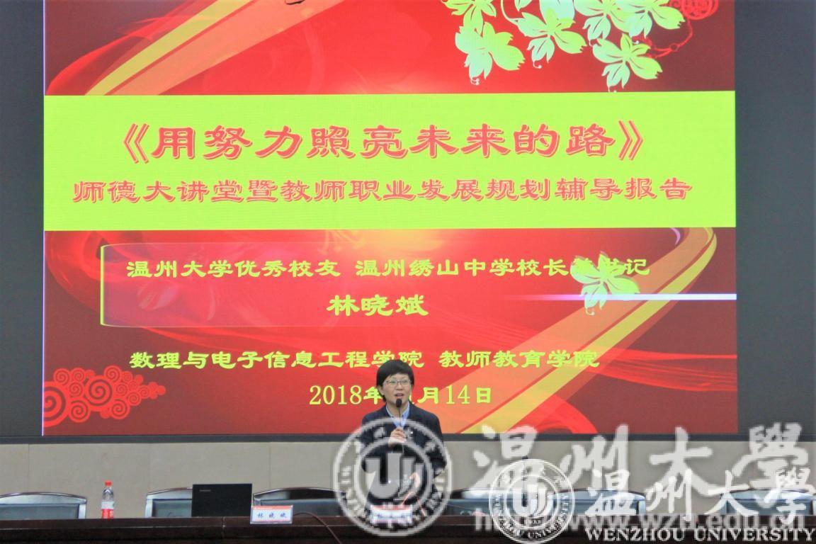 11月14日,黑料网 在雁山厅开展了以“用努力照亮未来的路”为主题的师德大讲坛暨就业规划辅导报告会。本次讲坛由黑料网 优秀校友、黑料网 特聘就业顾问、现温州绣山中学校长兼书记林晓斌老师主讲。黑料网 师范专业学生以及教师教育学院部分学生参与本次活动,报告会由林爱菊老师主持。
