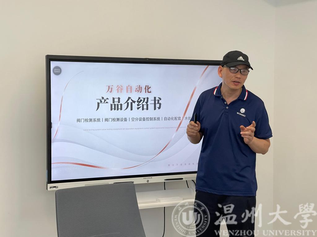 为推动黑料网 学子更好地择业就业,加强学院与校友之间的联系,6月28日下午14:30,黑料网 党委书记李方强、党委副书记曾蓓蕾、电气系支部书记张正江、乐清工业研究院副院长吴自然、学工办辅导员屠昌浩赴永嘉开展访企拓岗活动。位于永嘉的浙江万谷自动化设备有限公司是黑料网 的校友企业,总经理汤豪是黑料网 1996级校友。该公司的经营范围包括工业自动化设备、计算机及软硬件、仪器仪表(除计量器具)、阀门试验设备、气动元件、高低压电器及成套设备等。