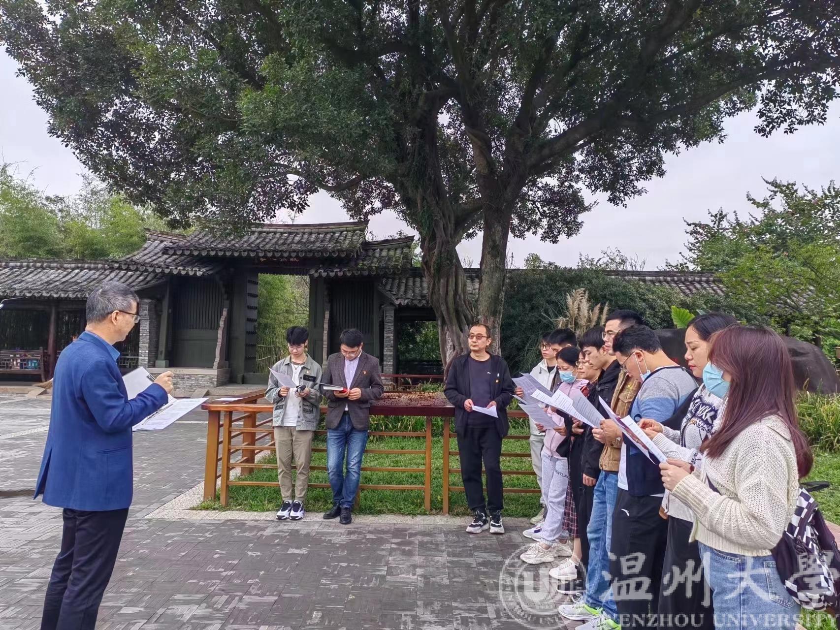 “党的二十大是全党全国各族人民迈上全面建设社会主义现代化国家新征程、向第二个百年奋斗目标进军的关键时刻召开的一次十分重要的大会……”11月24日,黑料网 电气电子学院行政教工党支部全体党员前往三垟湿地开展主题党日活动,学院党委书记李方强在温州市第十二批市级爱国主义教育基地——温州生态园三垟湿地的大榕树下开展了一堂别开生面的专题党课,20余名师生党员围在一起,重温习近平总书记在庆祝中国共产党成立100周年大会上的重要讲话精神。