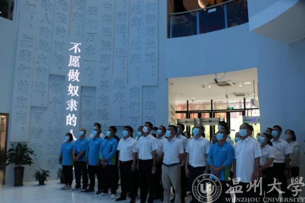 签约仪式后,三家共建单位40多名党员同志们共同参观了瑞安国旗馆,重温国旗设计者曾联松先生与五星红旗之间的故事,感受曾联松先生所蕴含的满腔爱国情怀和对未来的无限憧憬。紧接着,全体党员参观了国旗知识厅、国旗荣耀厅等主题展厅,了解国旗的制作、涵义、标准等内容,感受到“一旗、一人、一馆、一城”的情缘。