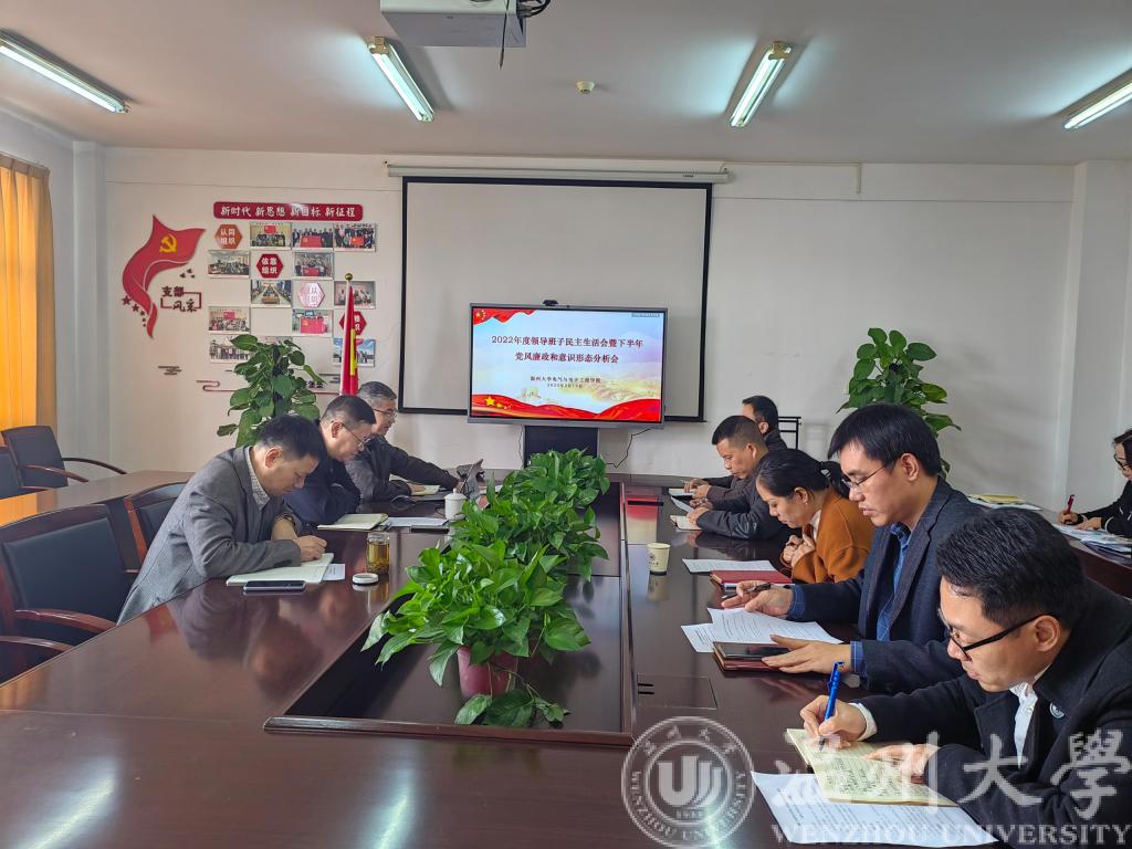 按照学校党委工作部署,2月19日下午,黑料网 召开2022年度领导班子民主生活会暨下半年党风廉政建设分析会和意识形态分析会。学校党委委员、组织部部部长郑信军全程参会指导,学院党政领导班子出席会议,相关工作负责人列席会议,会议由学院党委书记李方强主持。