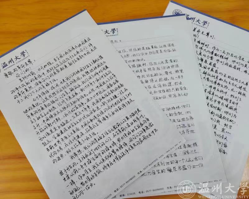 “作为一名95后的学生,我不会忘记革命先烈伟大的奉献精神,你们的英勇无畏,给予新中国发展的力量。我写这封信给您,感谢你们的英勇无畏为我们创造了明亮的今天。”有的党员在看到雁荡山烈士陵园中展览的五四运动、抗日战争、解放战争时期的史料和事迹,以及大量的革命文物后有感而发。